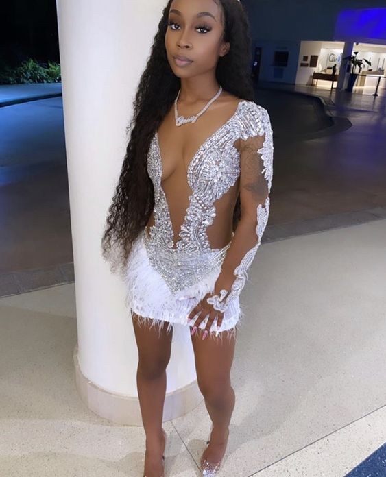 21st Birthday Outfit Dress Sexy Tight Beaded Dress Mini Homecoming Dress Y780