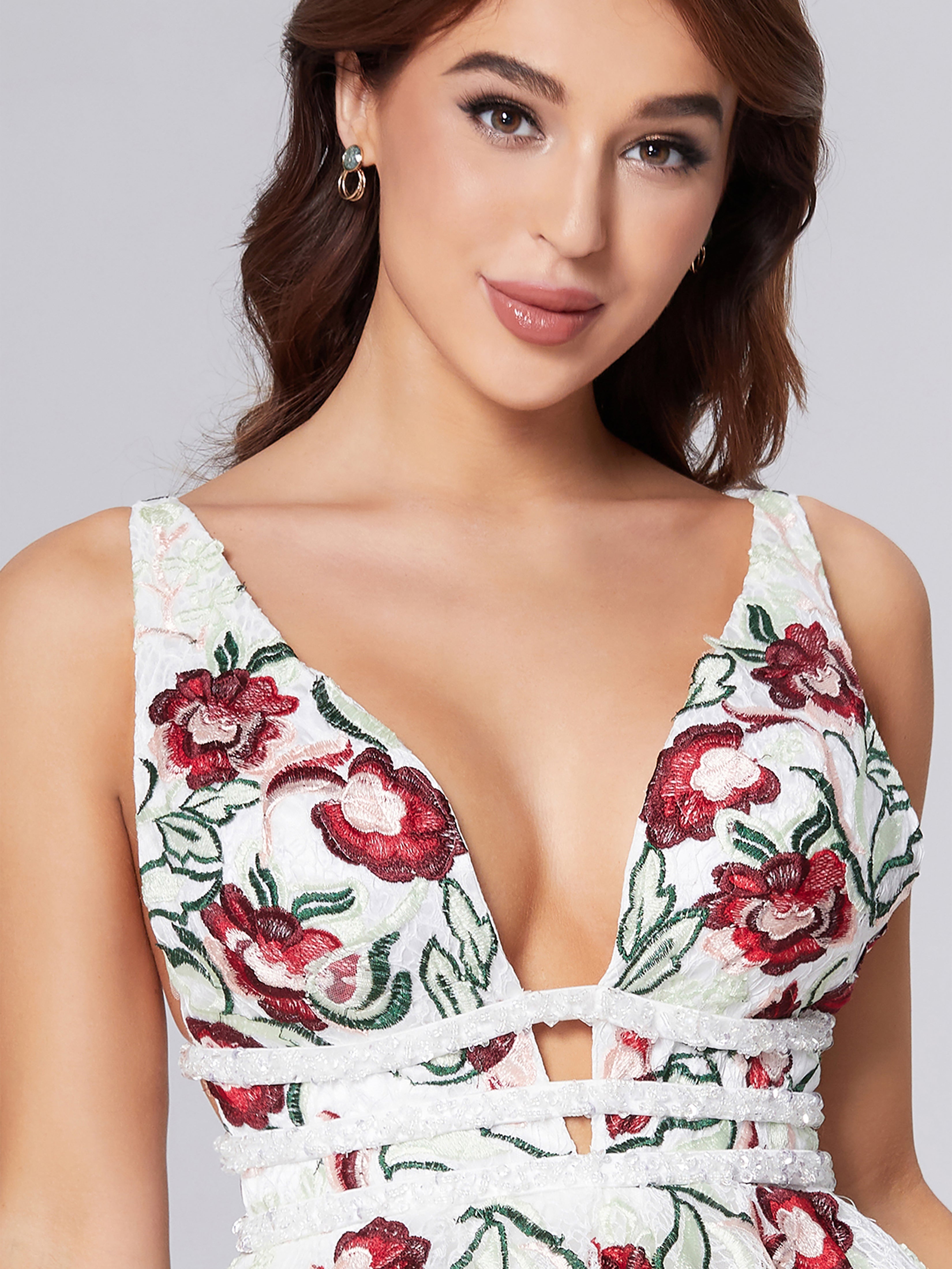 A-Line Deep V-neck Lace Appliques Short Homecoming Dress
