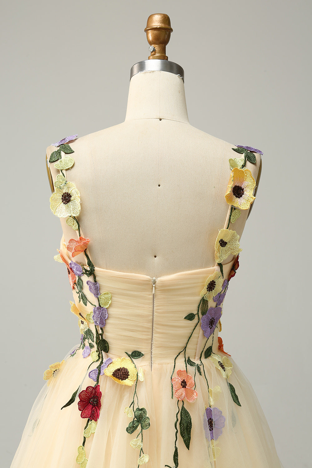 Champagne A Line Spaghetti Straps Short Homecoming Dress with Appliques