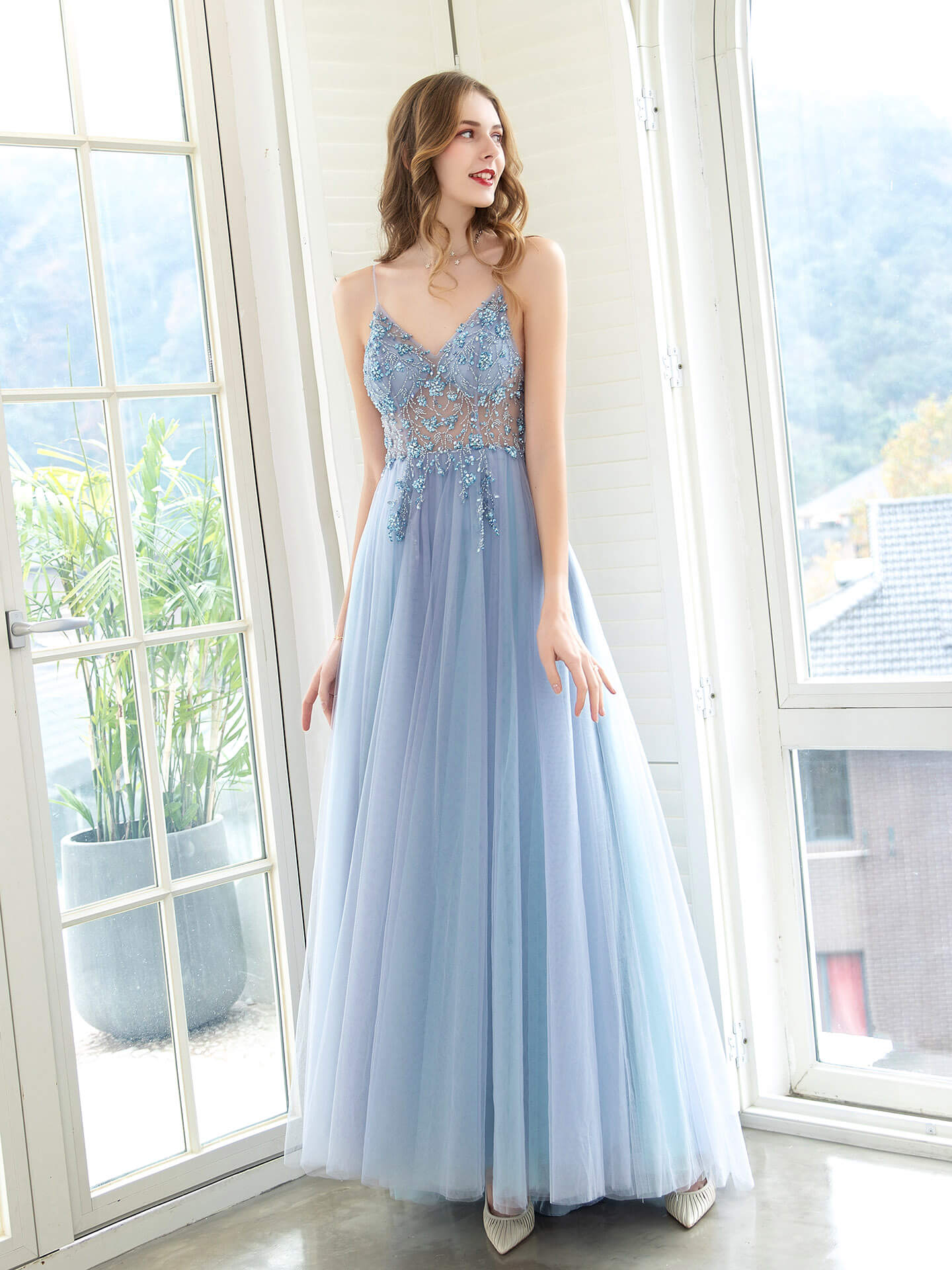 Boutique Evening Dresses Luxury Beaded Prom Dress Luxury Evening Party Dresses Spaghetti Strap Dressblee