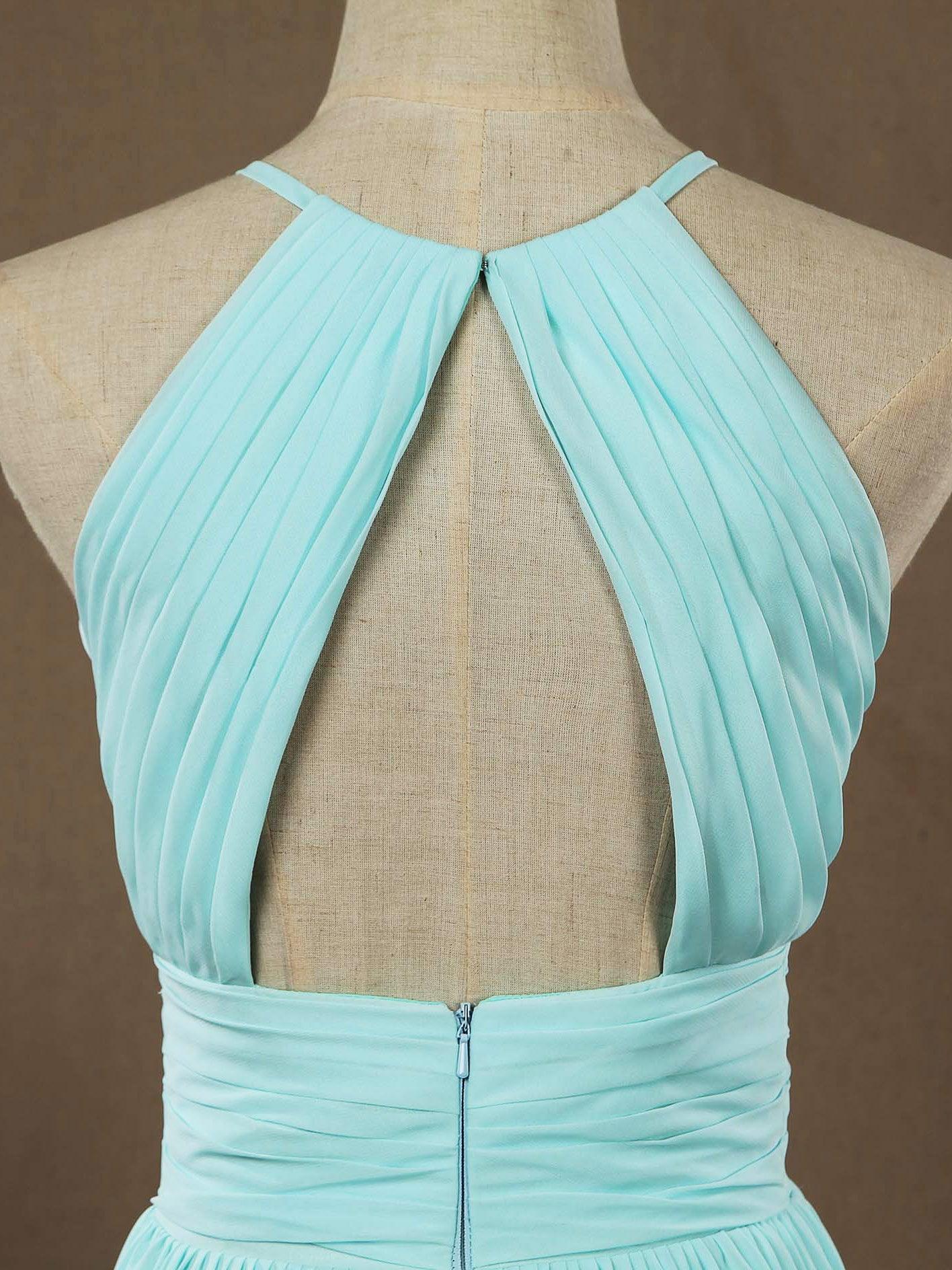 Chiffon Floor Length Prom Dresses A-Line Halter Open Back Pleats