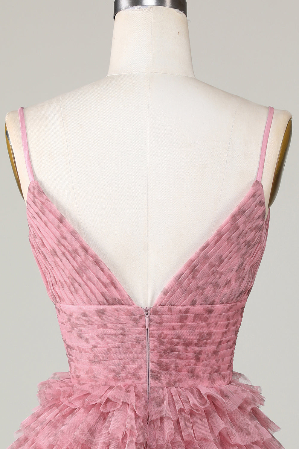 Blush Cute A Line Spaghetti Straps Short Homecoming Dress with Ruffles