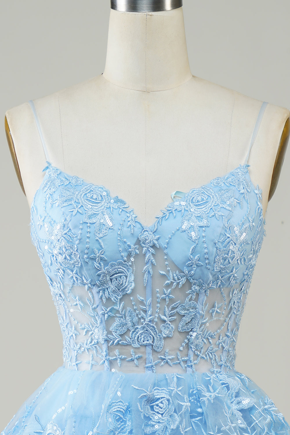 Cute Black A Line Sparkly Sequin Tiered Corset Short Homecoming Dress