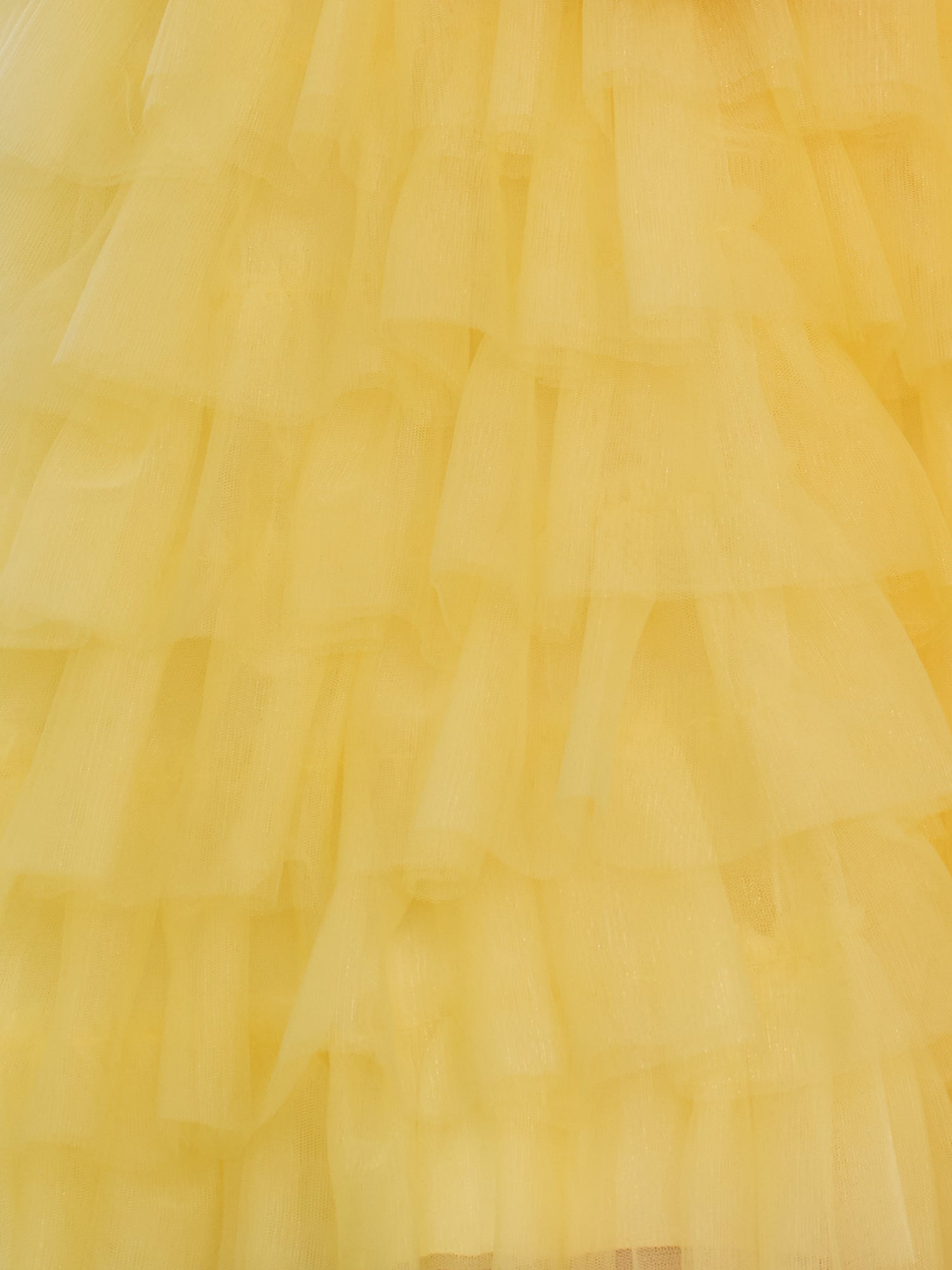 This bright yellow dress boasts a strapless design perfect for summer events. featuring a tiered ruffle tulle skirt that adds movement and volume to your look. Delicate floral accents adorn the bodice. enhancing the sweetheart neckline and adding an elegant touch. Its unique design and vibrant color make it a standout choice for garden parties. outdoor events. or a day out. Both stylish and comfortable. it's a must-have addition to your warm-weather wardrobe.