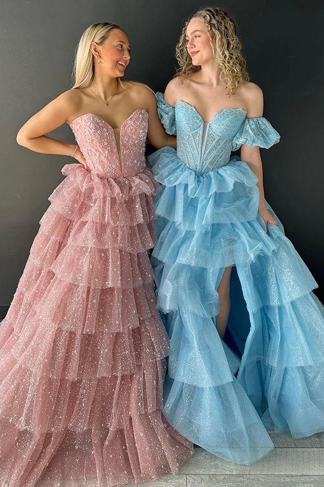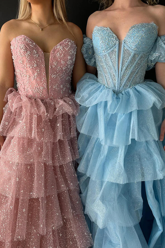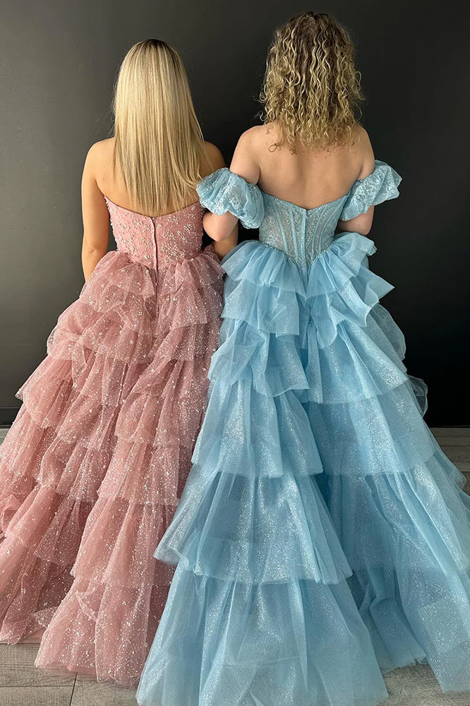 This enchanting A-line gown. crafted from delicate tulle fabric. exudes timeless elegance with a modern twist. Available in stunning shades of black. hot pink. and sky blue. this dress is perfect for a variety of occasions. The sweetheart neckline adds a soft. romantic touch. while the sleeveless design enhances its graceful charm. This dress is a perfect choice for both evening dresses and formal dresses. with its flowing sweep train and a lace-up back for a customizable fit. this gown flatters the figure while ensuring ease of movement and comfort. Whether you're attending a formal event. prom. or special celebration. this A-line tulle gown promises to make you feel like the belle of the ball.