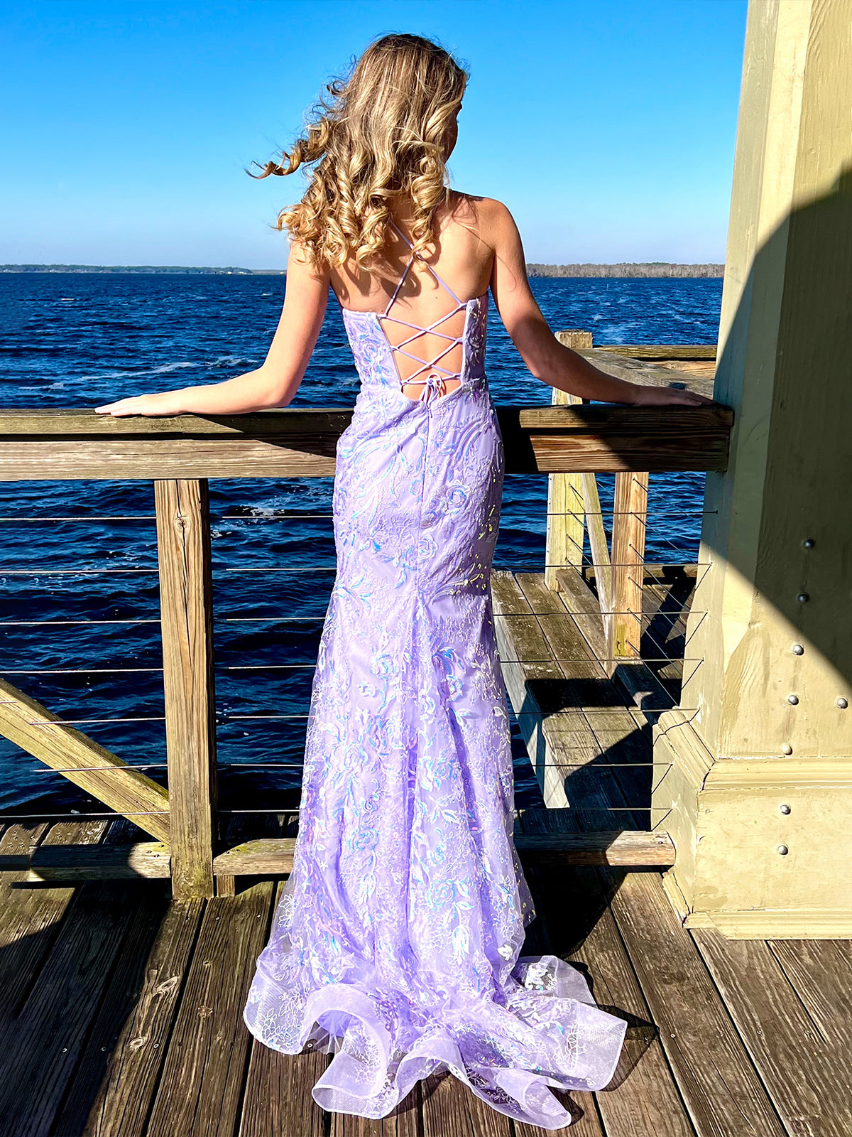 Sylvia | Mermaid Spagehtti Straps Lilac Lace Sequin Long Prom Dresses