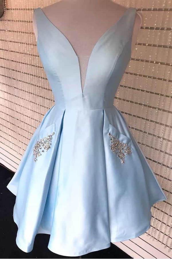 This V-Neck Burgundy Satin Cute Homecoming Dress with Pockets PD360 makes a stunning statement at any homecoming event. Its luxurious burgundy satin fabric provides a timeless elegance. while the pocket detail and stylish silhouette makes it both modern and timeless.