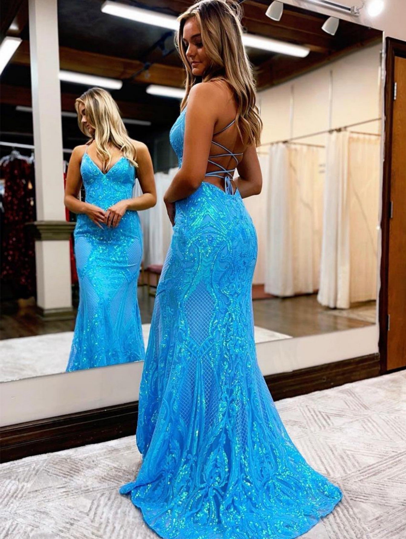 - Neckline: Spaghetti Straps Neckline
