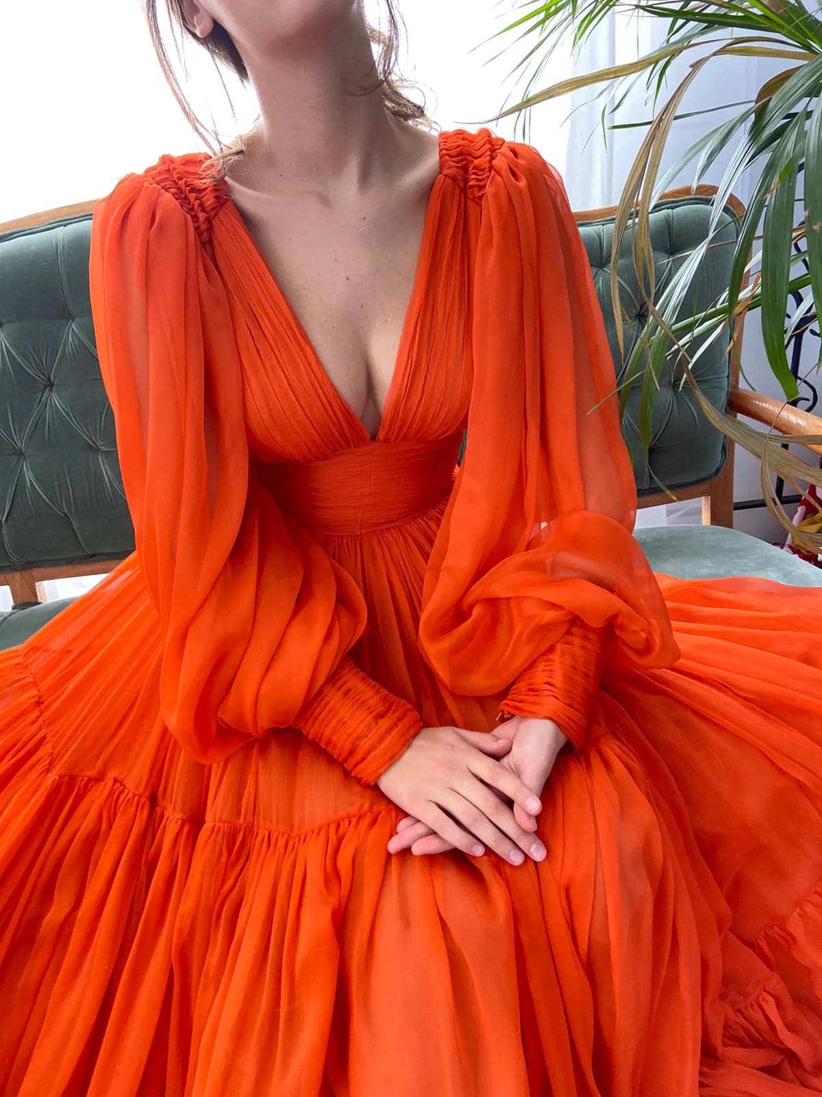 Long Prom Dress Puffy Sleeve Formal Gowns SYP25