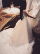 LBQW0044 features high quality tulle but the price is very nice. A line is very friendly to your curve, which is suitable for everyone. Sleeveless, chapel train and v neck are very elegant and gorgeous. Appliques add more sexy and chic to this wedding dress. Shop at AlinePromDress! You deserve it.
